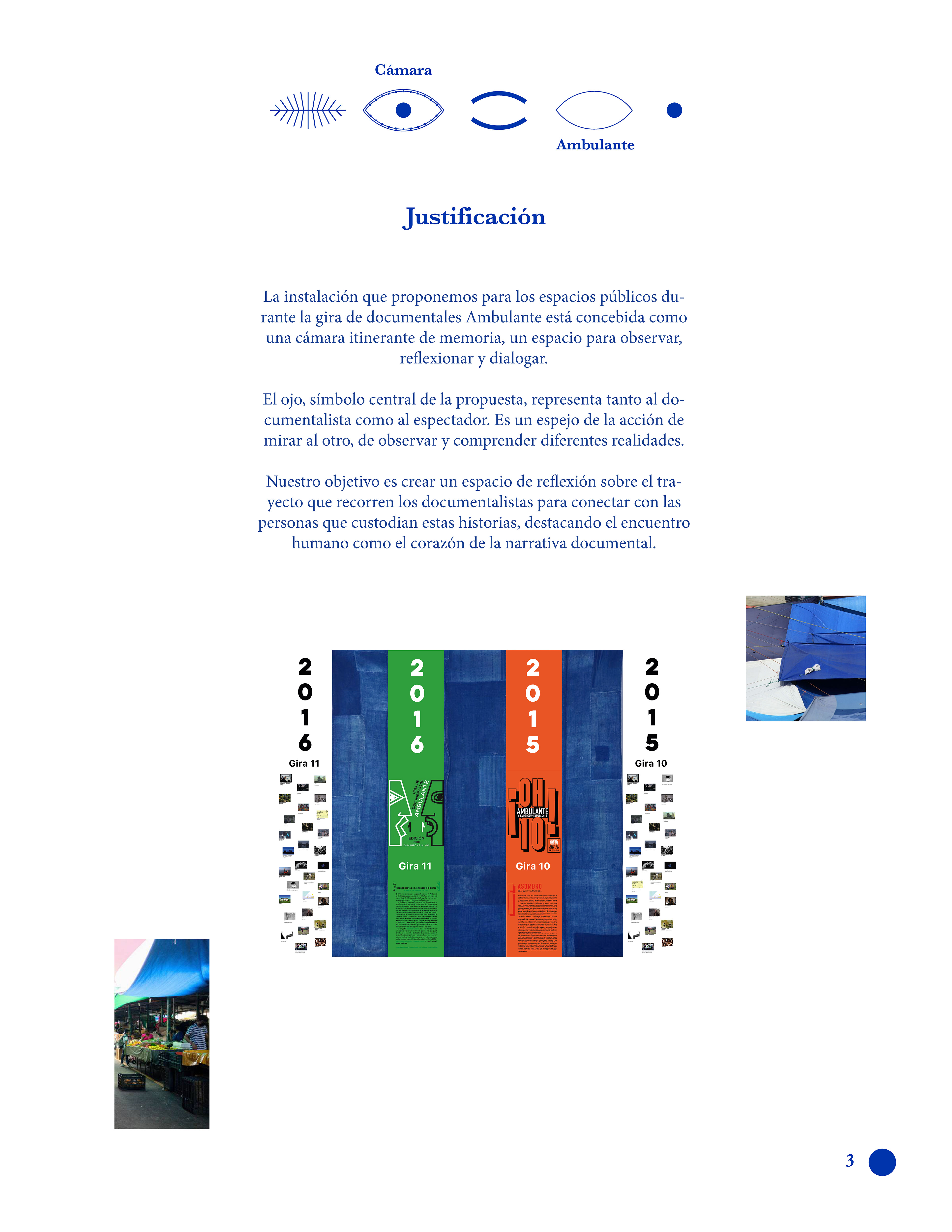 En el marco de la convocatoria Ambulante es una fiesta 2025, concebimos este proyecto como una instalación itinerante que acompaña y amplifica la presencia de Ambulante Gira de Documentales en el espacio público. Inspirados por el espíritu descentralizador y transformador del festival, nuestra propuesta busca materializar un punto de encuentro simbólico entre el cine documental y su audiencia: un espacio que se despliega como una cámara de memoria, abierta al diálogo, la contemplación y la reflexión.