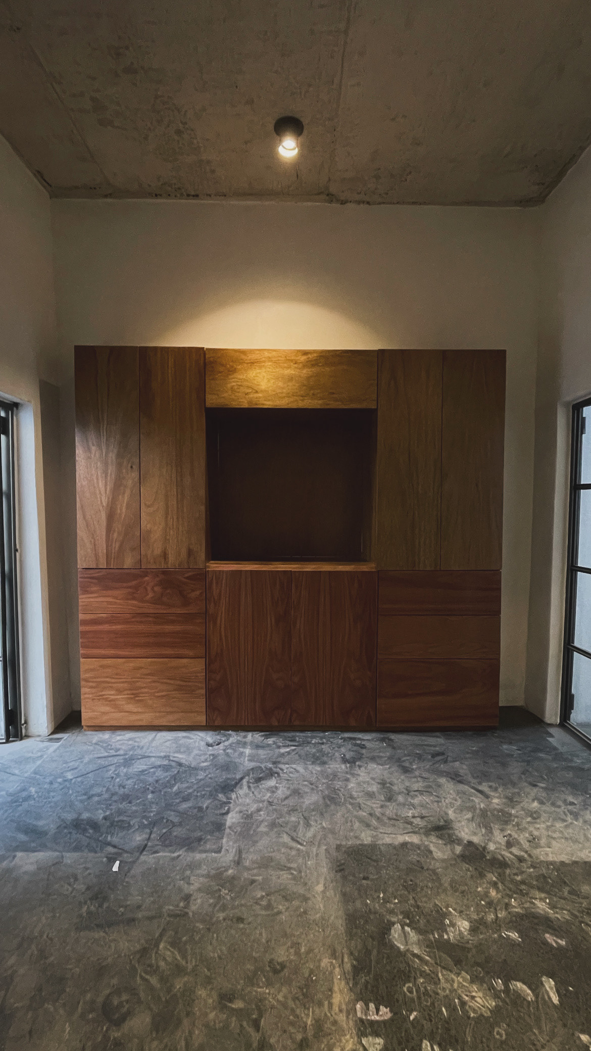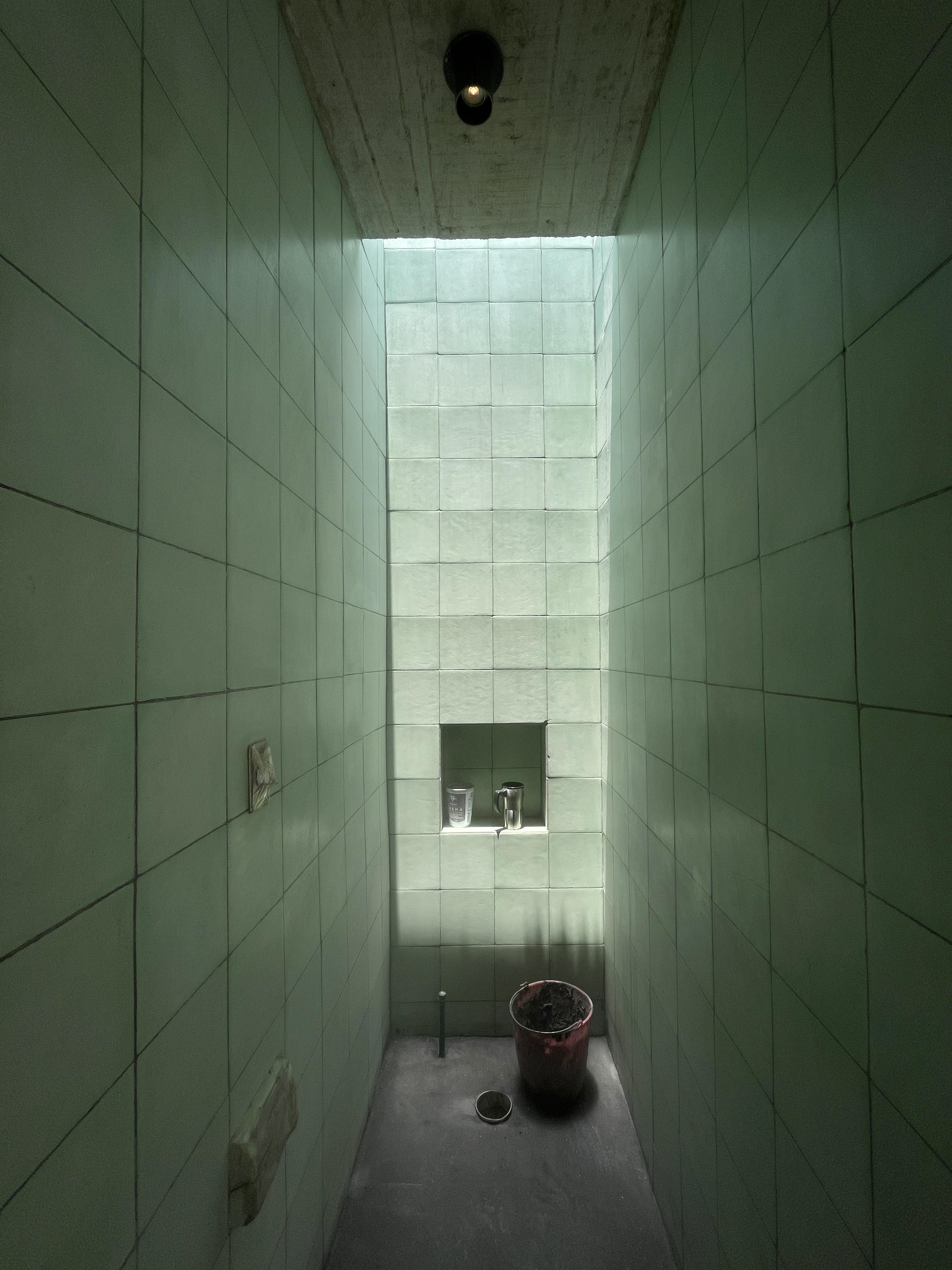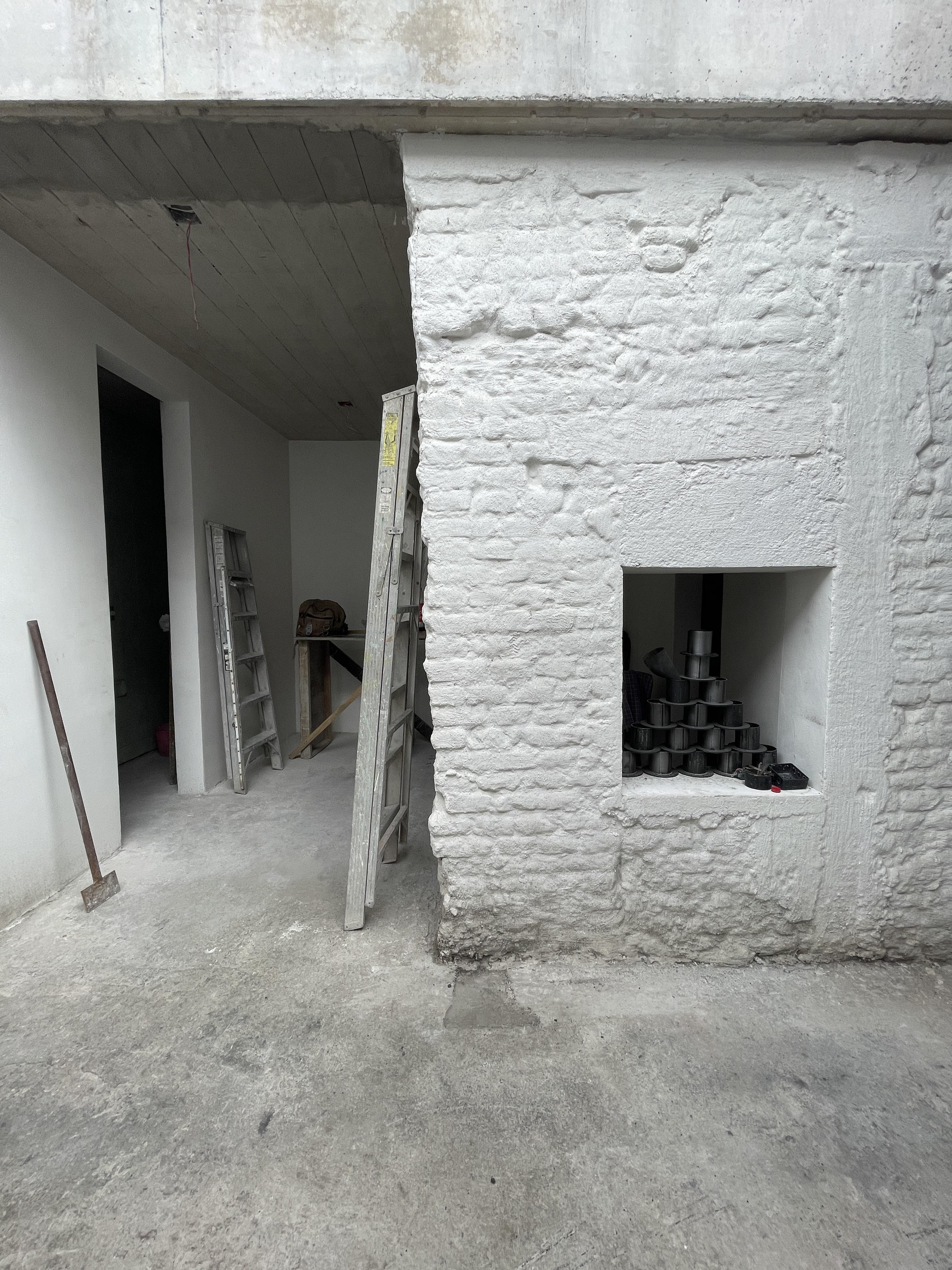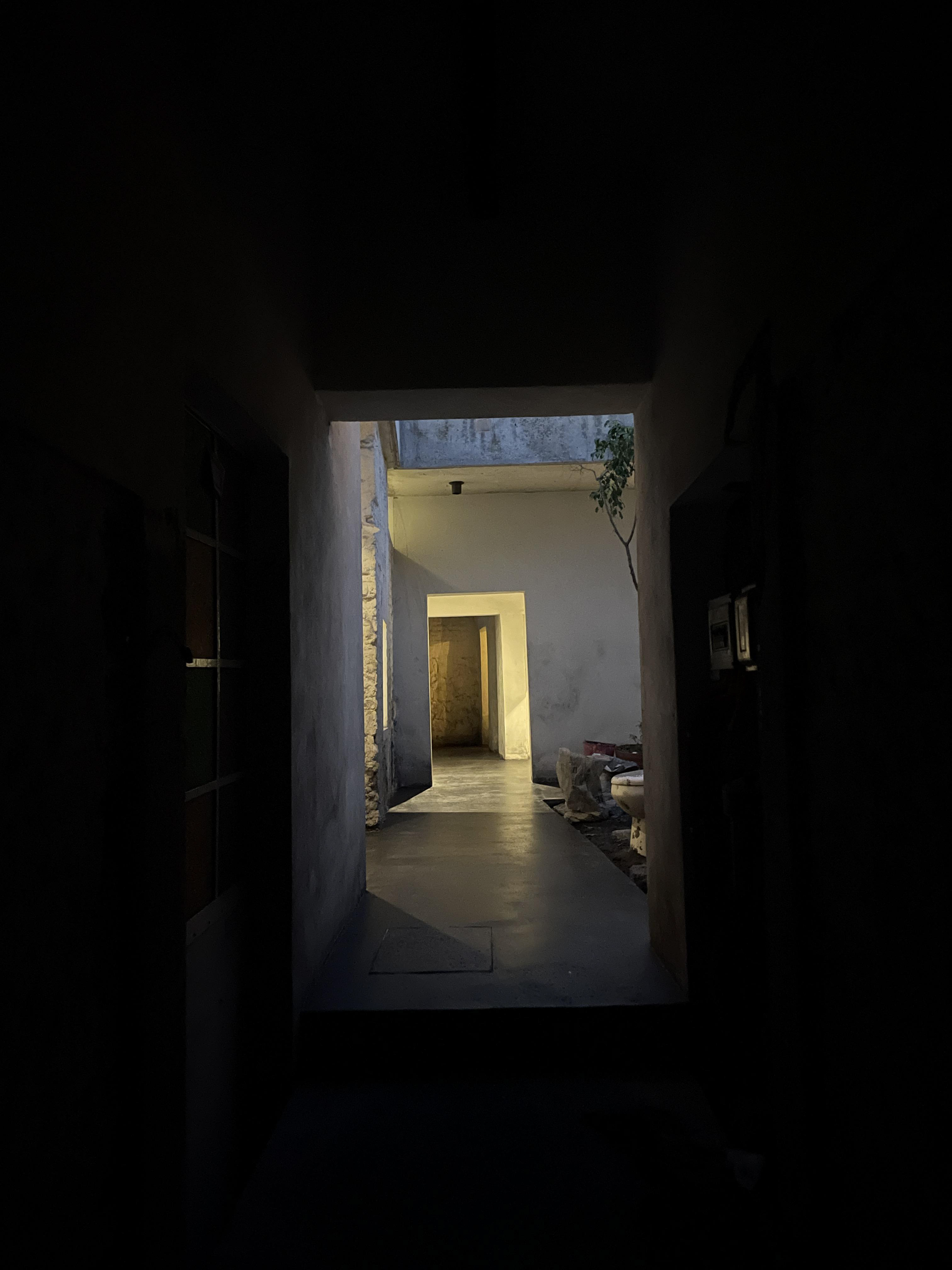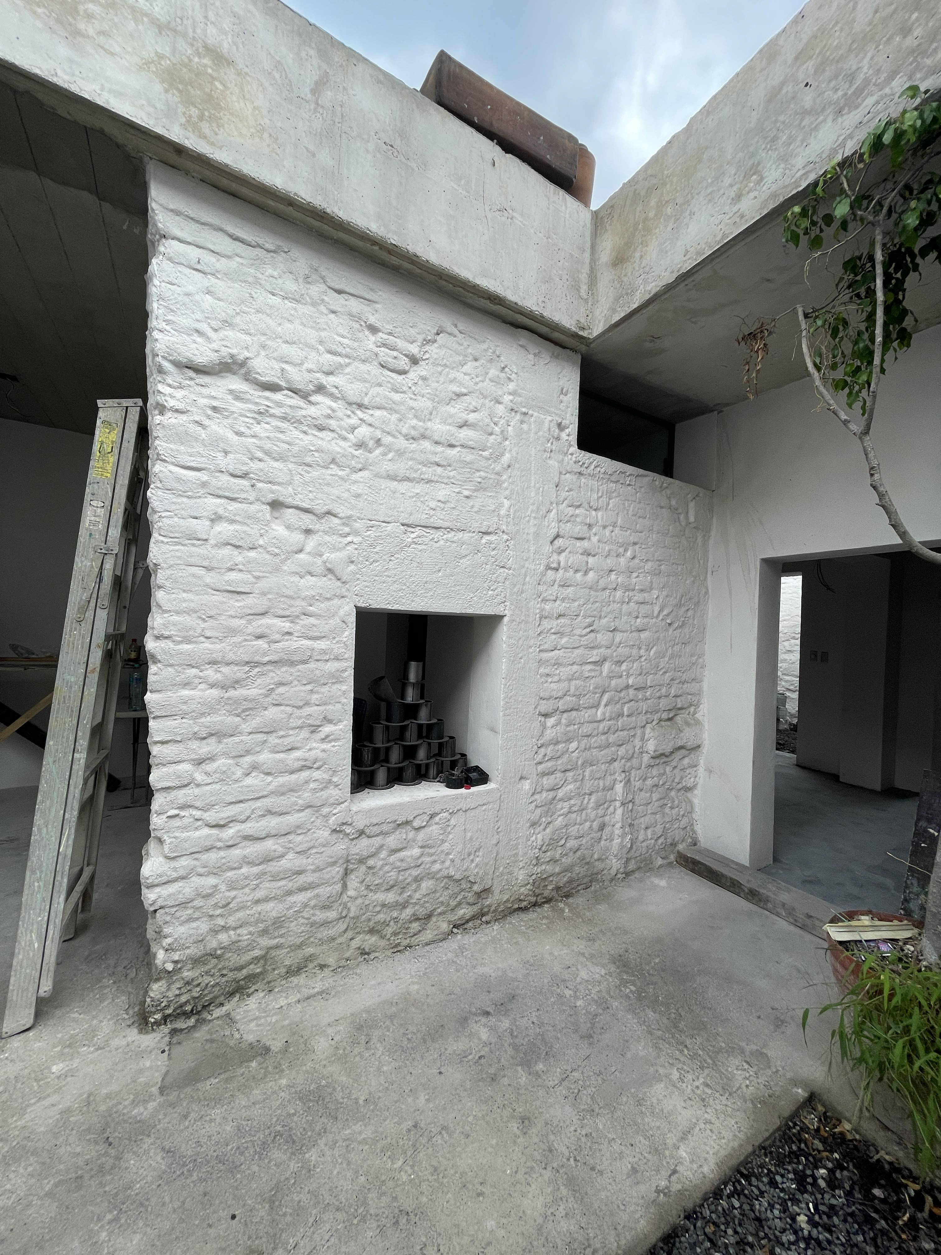 La restauración propuesta reimagina la casa preservando las crujías originales, reforzándolas estructuralmente con puntales de concreto y una losa que sobresale, integrando de forma estructural toda la edificación. Se plantea una nueva experiencia espacial que prioriza la continuidad y fluidez en el recorrido, conectando las crujías y generando una relación armoniosa entre los espacios servidos y servidores, que establecen pausas en la vivencia de la casa. La sala de estar, el estudio y la habitación principal se vinculan a través de estos espacios de servicio, facilitando la circulación interna.